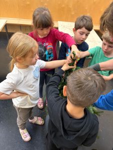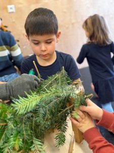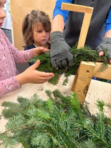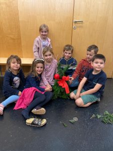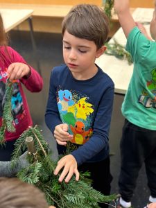 Im Piepmatzkindergarten bereiteten sich die Kinder in diesem Jahr besonders intensiv auf den Advent vor. In einem eigenen Workshop wurden kleine Rentiere aus Tannenreisig gefertigt. Auf vorbereiteten Holzgestellen wurde mit viel Geschick und unter Anleitung von Sabine Prosser die Zweige so befestigt, dass am Ende ein kleines, grünes Rentier entstanden war. Mit einer roten Schleife und der unverzichtbaren, roten Nase war „Rudolf“ gleich zu erkennen. Herzlichen Dank für die gute Idee, für die aktive Unterstützung und vor allem für die kindgerechte Anleitung. Vor lauter Begeisterung entstand beinahe eine kleine Herde an Rentieren.