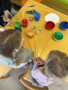 Was man mit Farben, Wasser und einem Strohhalm alles machen kann? Lustige Bilder zum Beispiel. Die speziellen Farben in Wasser auflösen und dann die Flüssigkeit mit Luft, die durch den Strohhalm gepustet wird, zum Blubbern bringen. Die Bläschen in der Farbe lassen auf einem Blatt Papier ein wundervolles Bild entstehen. Und fix ist: Die kleinen Piepmätze sind schlau genug, beim Strohhalm nicht anzusaugen!! … oder was hast Du gedacht?