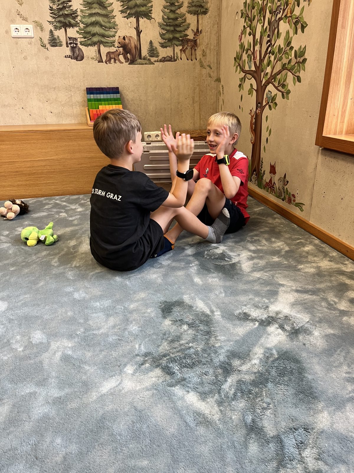 Zwischen Essen und Lernen geht es in der Piepmatz-Nachmittagsbetreuung allermeistens in den Garten. Sebastian und Simon sind begeisterte Fußballer und eine Karriere bei Sturm oder