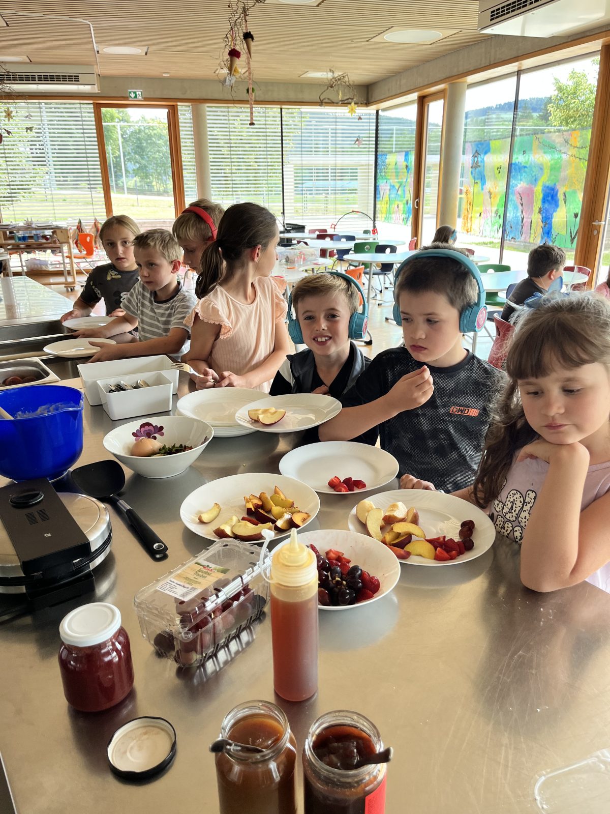 Die Kinder der Piepmatz-Sommerbetreuung in der Volksschule freuten sich jeden Tag über ein köstliches Frühstück. Das Buffet wurde abwechslungsreich gestaltet. Am Fototag gab es Topfenwaffeln