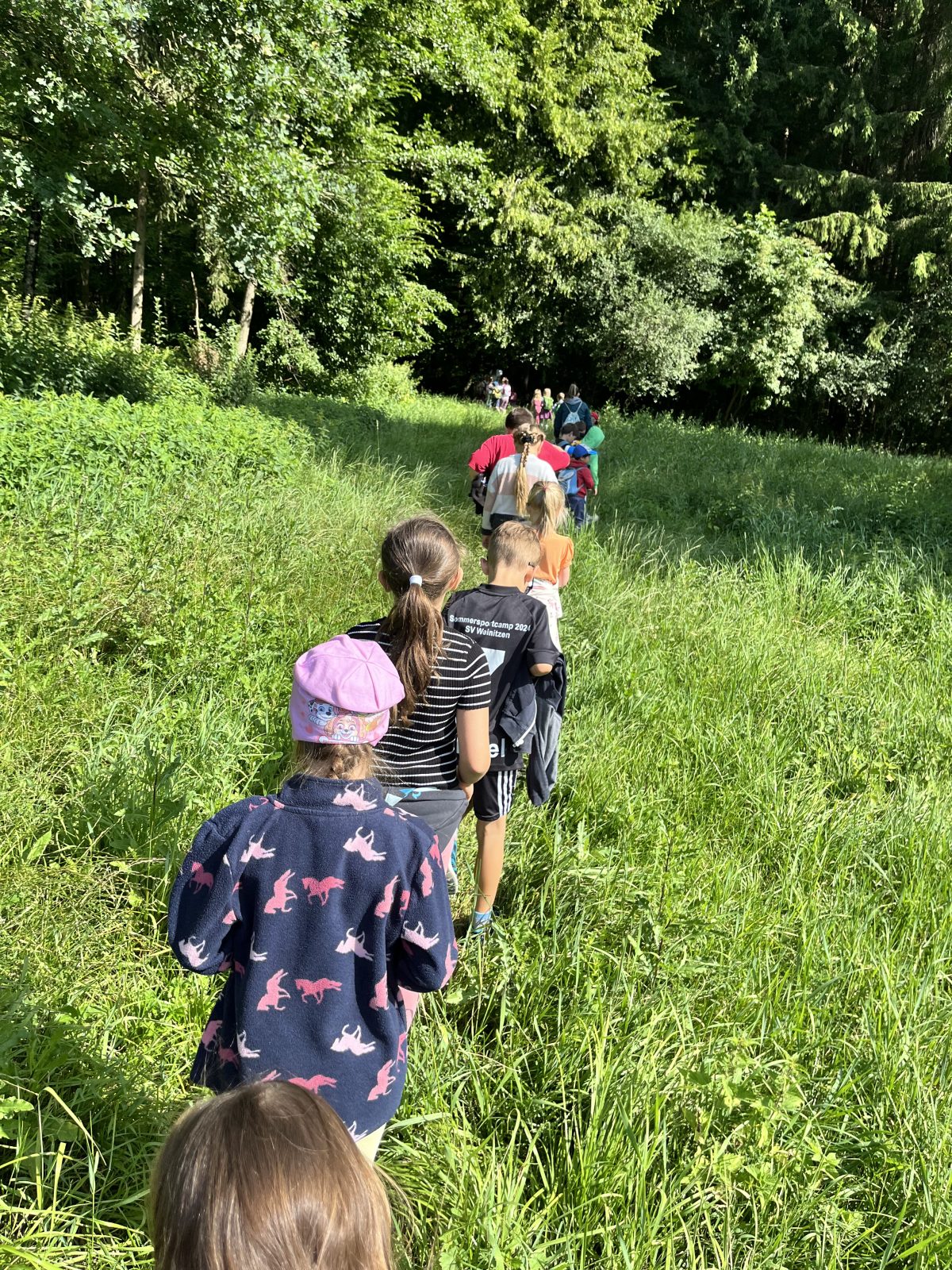 Gemeinsam mit den Kindern des Sommerkindergartens machten sich die Piepmätze aus der Nachmittagsbetreuung auf den Weg in den nahegelegenen Wald, um Abenteuer zu erleben. Aus