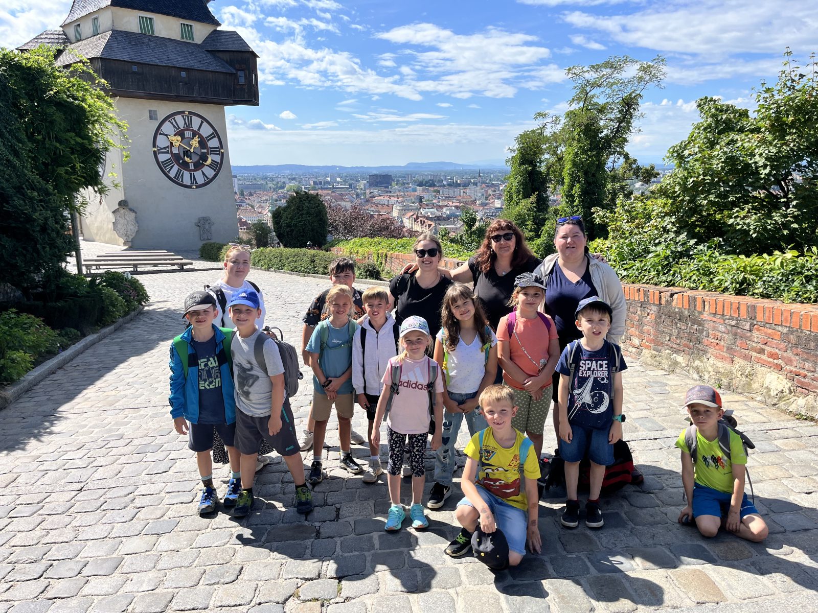 Graztag Mit dem Bus in die Stadt, mit der Schlossbergbahn auf den Schlossberg und zu Fuß überall umher. Am Schlossberg wurde auch noch gejausnet, gespielt