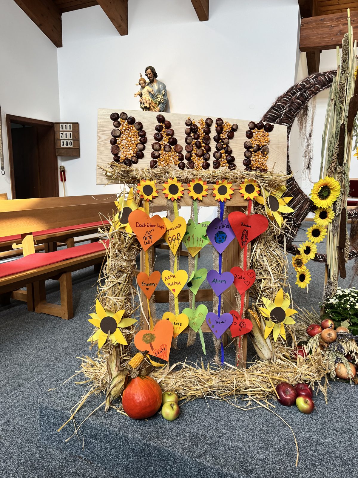 Mit viel Freude und Einsatz bastelten die Kinder der Piepmatz-Nachmittagsbetreuung den Kirchenschmuck zum Erntedankfest in der Pfarrkirche von Weinitzen. Auf die Herzen in den Farben