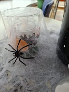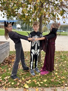 Am 31. Oktober waren urviele Geister und schaurige Gestalten in der Nachmittagsbetreuung bei der Halloweenparty anzutreffen. Die Skelette haben wirklich nichts mit dem Essen in der Schulküche zu tun! Die Vampire sind auch nicht für immer auf rote Flüssignahrung umgestiegen. Eine Geisterjagd mit speziellen Lampen, mit denen die kleinen Gespenster entdeckt werden konnten, machte besonders viel Spaß.