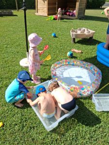 Die Piepmatz-Kinderkrippe Weinitzen hat auch über den Sommer zusätzlich sechs Wochen offen. Nicht allen Eltern ist es möglich, die gesamten Sommerferien mit familieninterner Betreuung abzudecken. Beim Piepmatz bleiben die Türen nur drei Wochen zu. Im Sommer verbringen die kleine Piepmätze die allermeiste Zeit im Garten. Das neue Dach über dem Sandkasten spendet angenehmen Schatten und zum Abkühlen kann man zwischendurch auch in das Plantschbecken springen. Fad kann es hier absolut keinem werden. Immer sind genug Kinder und Mitarbeiterinnen zum Spielen da.